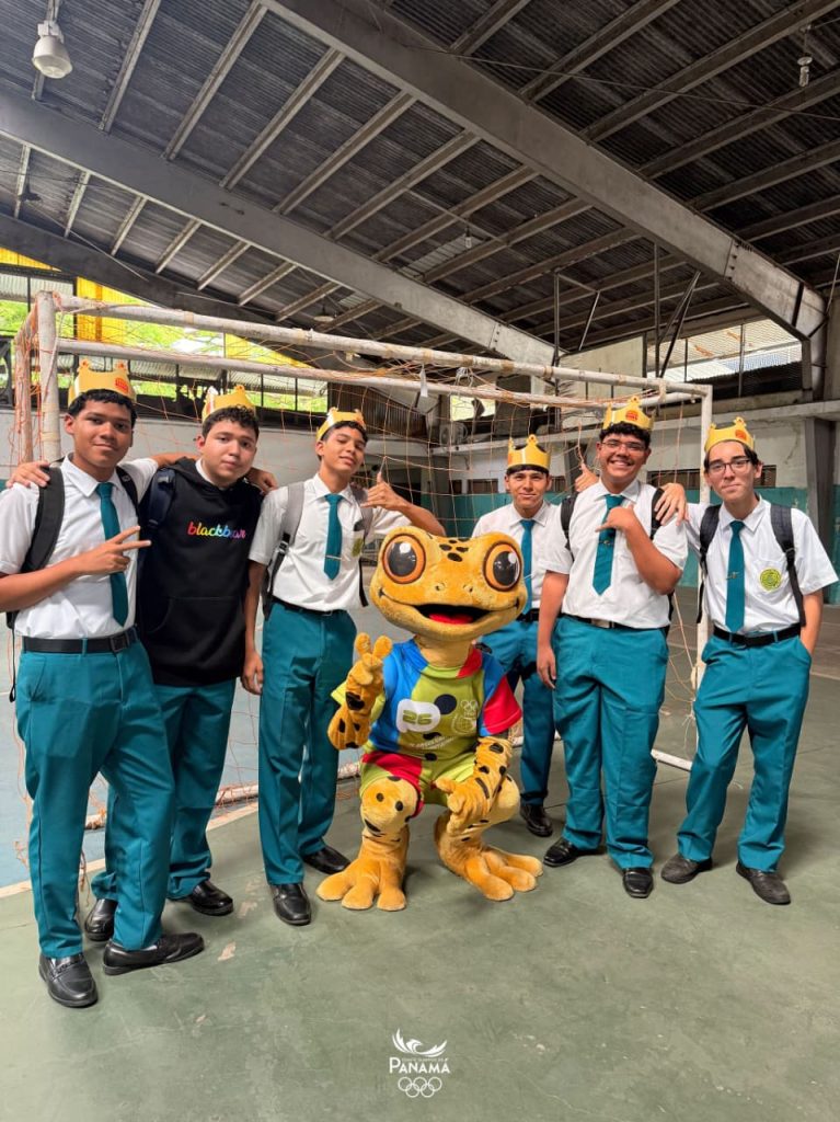 With a strong commitment to educating through a message focused on biodiversity, health, and sports—because here in Panama we are on another level Antón doesn’t stop. This time he traveled to Colón province, where he visited Instituto América and Colón. At Fermín Naudeau, Antón played 3×3 basketball, one of the sports featured in the South American Youth Games.