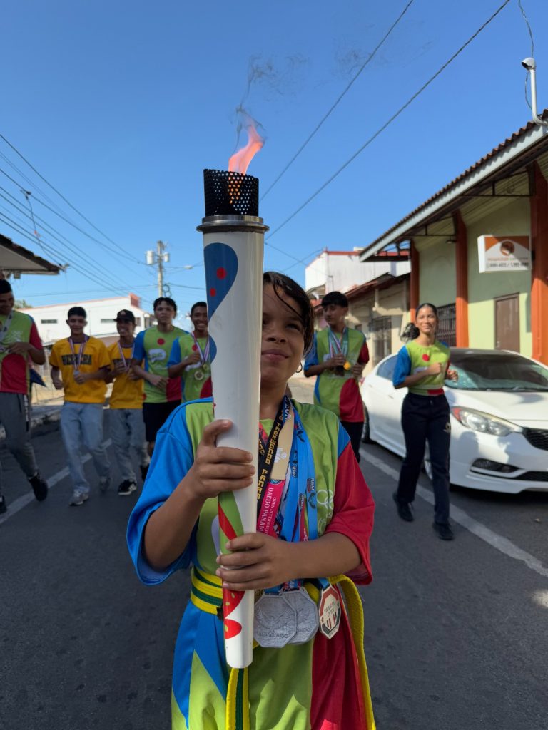 The torchbearer was Edward Díaz, a standout basketball player, who led the route alongside young local talents set to participate in the South American Youth Games Panama 2026. Among them were chess player Christian Rodríguez, along with athletes such as Cristian Bósquez (boxing), Lía Poveda (karate), Víctor De León (boxing), Ashley Navarro (taekwondo), and Francisco De León (swimming).